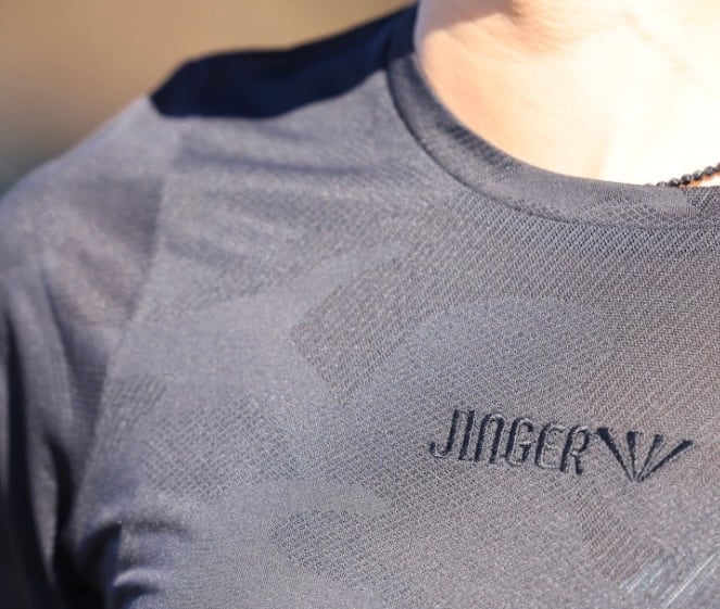 迷彩柄の透かしジャガードが特徴のユニセックスランニングTシャツです。